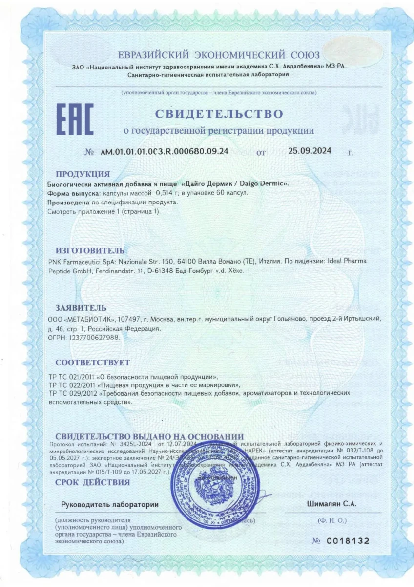 Daigo Dermic - революционный японский комплекс с натуральным пептидом хлореллы IPH для клеточного омоложения кожи. Не просто восполняет дефицит коллагена, а перезапускает естественные механизмы регенерации, воздействуя на первопричину старения. Биодоступность 98% - превосходит аналоги в 3-5 раз.