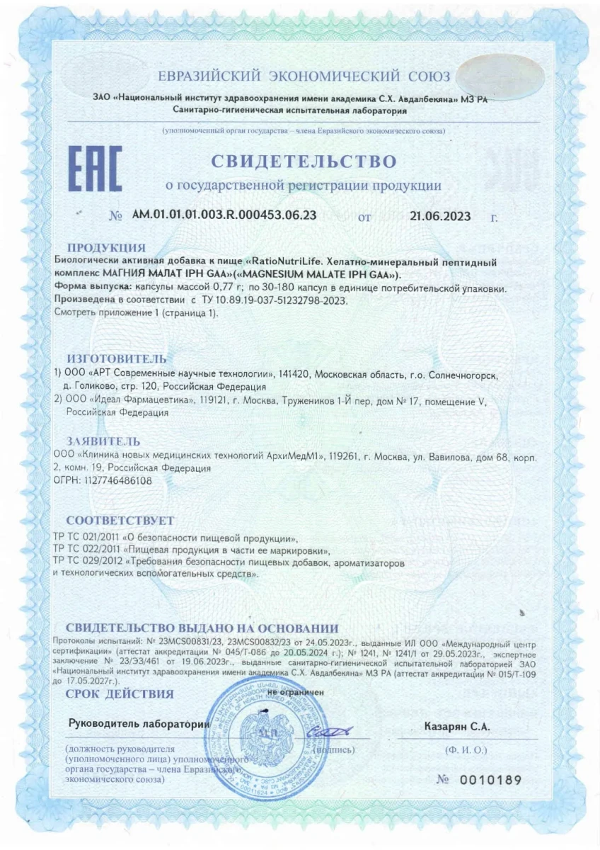 Магния Малат IPH GAA — Магния малат с пептидом IPH GAA, нервоновой кислотой и витамином B1 для энергетических процессов, нервной и мышечной системы. Изготовлено с использованием технологий и методик анализа пептидных комплексов Ideal Pharma Peptide GmbH (Германия).