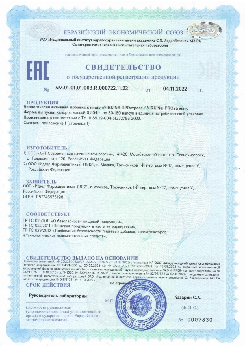- Номер СГР: АМ.01.01.01.003.R.000722.11.22 от 04.11.2022 г.